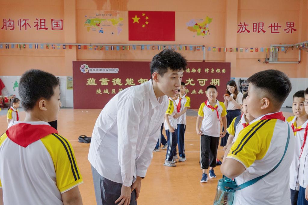 “鼋”起AI,因爱启程。实践团成员结合日常心理育人工作经验,带领陵城区第四实验小学的同学们开展了“心有千千结”“数字炸弹”“逛三园”等团体辅导活动,旨在培养青少年的团队合作意识,让小朋友们在活动中收获幸福与喜悦,拉近团队成员与小朋友之间的距离,构筑情感纽带,为后续分组合作体验编程创作奠定良好基础。