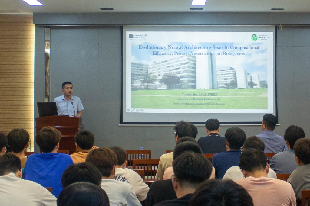 7月20日下午,欧洲科学院院士、IEEE Fellow,德国比勒菲尔德大学工程学院“洪堡人工智能教席教授”金耀初应邀,来校为人工智能与计算机学院师生作《Multi-objective evolutionary neural architecture search: Communication efficiency, privacy preservation, and adversarial robustness》主题讲座,讲座由学院副院长谢振平主持,副院长钱鹏江、宋威,教师代表王士同等70余名师生参加。