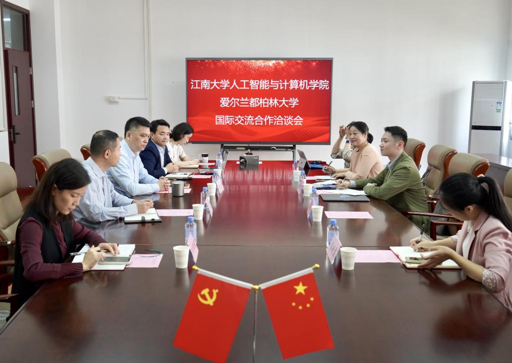 10月25日上午,人工智能与计算机学院、爱尔兰都柏林大学国际交流合作洽谈会在学院318会议室召开。都柏林大学大中华区合作关系主任俞兆源、无锡江达留学服务有限公司总经理王力翊一行到访学院,江南大学国际交流合作处副处长蔡建英,外国专家科科长蔡晓霞,人工智能与计算机学院党委书记张华、副院长(主持工作)方伟,副院长钱鹏江,院长助理詹千熠,院学工办主任兼分团委书记王园园等出席洽谈会。