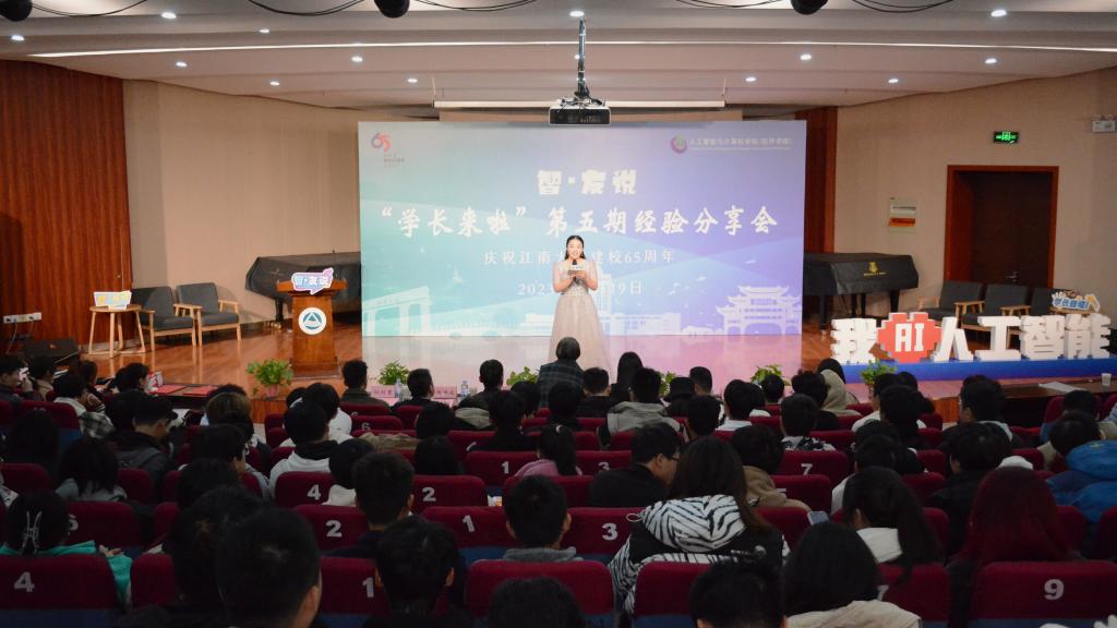 传薪火,明方向。人工智能与计算机学院“学长来啦”第五期经验分享会于11月19日在北活音乐厅顺利举办。阿里云计算有限公司研发总监闵洪波校友、常州利贞电子科技有限公司总经理杨松校友、三年二班文化创意有限公司联合创始人姜卉校友、阿里巴巴集团后端研发部门技术人员孙创昱校友等嘉宾,计科01级班主任代表顾颖悟老师、学院党委副书记兼副院长王莉莉、副院长宋威等领导出席,大一、大二年级400余名学生参加,活动由数媒2204班学生德吉贡桑主持。