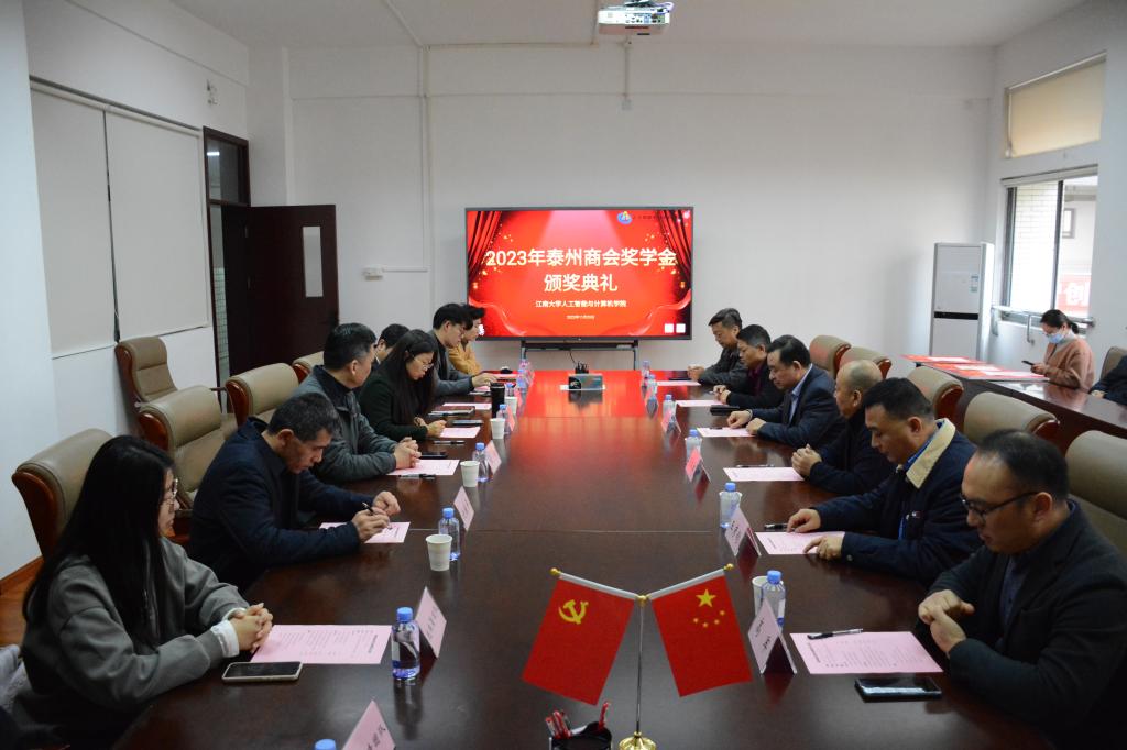 11月29日,江南大学“泰州商会奖学金”颁奖典礼在人工智能与计算机学院B318会议室举行。无锡市泰州商会党支部书记、江苏远航建筑装饰工程有限公司总经理周庄其,副会长、无锡速佳广告传媒有限公司总经理徐桂荣,副会长、金凯旋特种门窗制造有限公司总经理顾本红,副会长、群智邦服饰有限公司总经理王彦钧,秘书长高军以及人工智能与计算机学院党委书记张华,副院长谢振平、钱鹏江等领导嘉宾、获奖学生、科创俱乐部学生代表出席颁奖典礼。颁奖典礼由学院党委副书记、副院长王莉莉主持。