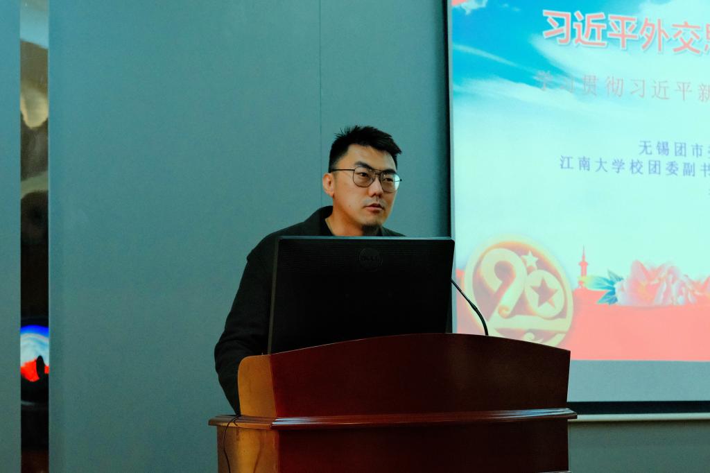活动伊始,孙晨光作了“习近平外交思想与构建人类命运共同体”的专题报告。他结合当下时事,以新兴科技的崛起、世界格局与国际关系的改变、疫情的影响、地缘政治冲突为切入点,讲述构建人类命运共同体,应站在历史正确的一边,站在人类进步的一边,为国际关系确立新思路,为全球治理提供新智慧,为国际交往开创新格局,为美好世界描绘新愿景。