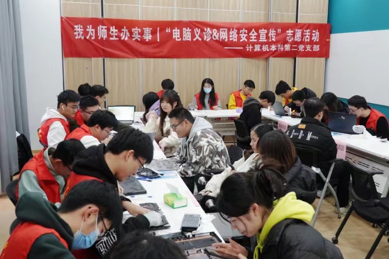 活动现场热闹有序,志愿者们忙碌在各类设备之间,专注于处理各类问题,共维修了40余台电脑。此次志愿活动受到了师生们的广泛好评,同学们纷纷表示,通过本次活动,不仅解决了电脑使用中的困扰,还对网络安全有了更深刻的认识。