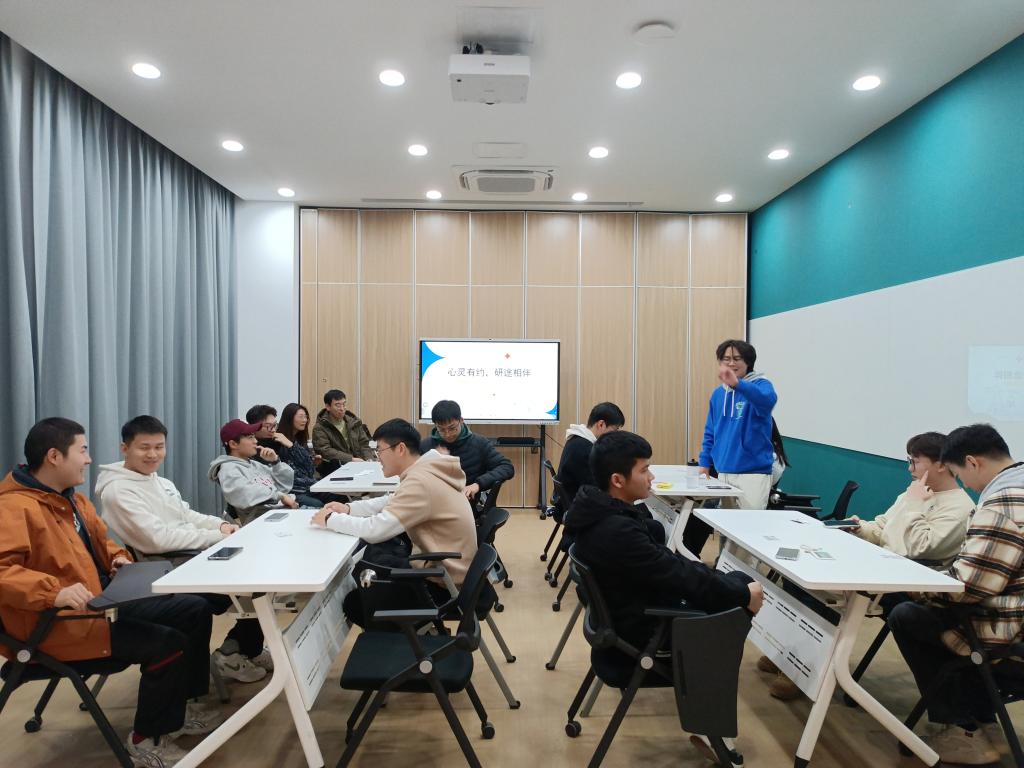活动伊始,同学们进行自我介绍和创意故事接龙团辅小游戏,在轻松愉悦的氛围中加深彼此之间的了解。分组交流阶段,他们围绕“新学期研究生生活规划及面临的挑战”这一主题展开热烈讨论,并就如何有效地应对科研压力提出见解。