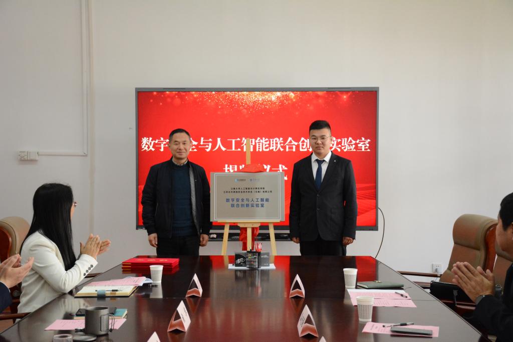 3月29日,由江南大学人工智能与计算机学院和江苏云天网络安全技术有限公司联合共建的“数字安全与人工智能联合创新实验室”揭牌仪式在江南大学人工智能与计算机学院B318会议室举行。江苏云天网络安全技术有限公司创始人戴宪宇、江苏云天网络安全技术(无锡)有限公司负责人张令鑫,人工智能与计算机学院副院长(主持工作)方伟、党委副书记兼副院长王莉莉、副院长钱鹏江等出席揭牌仪式。仪式由人工智能与计算机学院党委书记张华主持。
