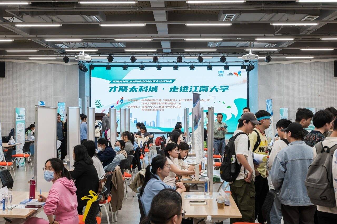 为推动太湖湾科创城产业发展,加速打造高层次专业人才集聚区,为太湖湾科创城企业提供人才支撑,进一步搭建校企对接平台,加强学校与用人单位交流沟通,促进毕业生高质量充分就业,4月26日下午,由中共高新区工委(新吴区委)人才工作领导小组办公室、无锡太湖国际科技园管理办公室主办,江南大学人工智能与计算机学院、无锡市信息化协会承办的才聚太科城·走进江南大学——无锡高新区太湖湾科创城春季专场招聘会在江南大学北区大学生活动中心F105成功举办。