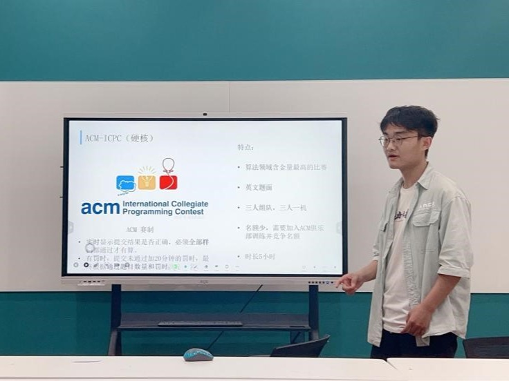 计科2103史传正向大家介绍了自己的学习方法和如何参加竞赛。首先他介绍了各类竞赛,列出了适合学院学子参加的科创赛事,并推荐大家参加程序设计类竞赛,这类竞赛不仅数量多,容易拿奖,而且非常实用,能大幅提升代码能力,对自己的学业课程、项目科研、考研复试、工作实习等都大有助力。他向同学们清楚介绍了各个程序设计类竞赛的赛制与区别,让大家能找到适合自己的竞赛并有针对性的训练。此外,他还列出了参加此类竞赛需要掌握的语言和算法,并推荐了训练平台。