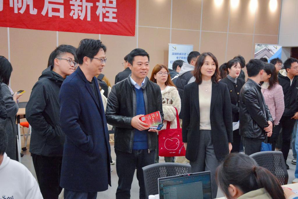 校党委学生工作部(处)部(处)长周伟涛、校融媒体中心主任兼党委宣传部副部长单筱婷、人工智能与计算机学院党委书记陈琳、物联网工程学院党委书记张华等莅临招聘会现场,与用人单位代表和参会学生亲切交谈。他们详细了解了用人单位的人才需求状况和对学院人才培养工作的宝贵意见与建议。同时亲切询问了参会同学的求职进展,鼓励他们积极拥抱就业市场,充分展现个人才能,把握机遇,找到自己满意的工作。