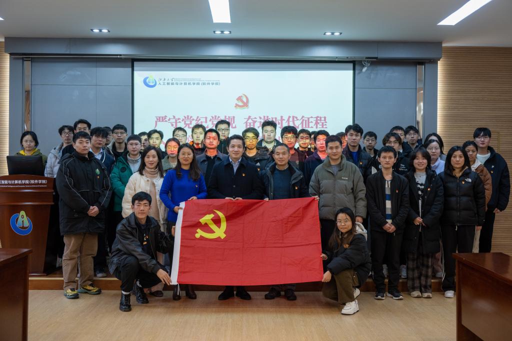 为巩固党纪学习教育成果,进一步贯彻党的二十届三中全会精神,深化新时代人工智能学子的使命担当,激发创新活力,12月20日下午,校党委常委、副校长马鑫参加人工智能与计算机学院计算机研究生第一党支部“严守党纪党规 奋进时代征程”主题党日活动,学院党委委员、院长方伟,党委副书记、副院长王莉莉,以及党支部全体成员出席活动。活动由支部青年教师、学院分团委书记王园园主持。