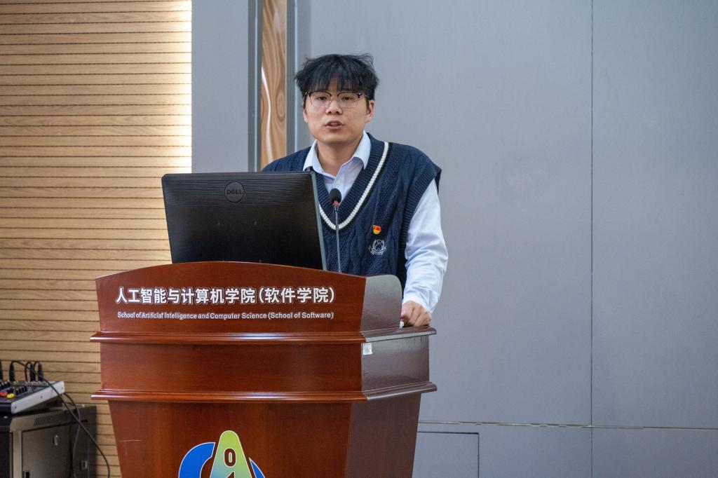 方伟作为联系该支部的党委委员,为支部成员带来了一堂题为《挺立潮头,奋楫笃行—投身高水平科技自立自强新征程》的主题党课。他以党的二十届三中全会精神为指引,深刻阐述了新时代背景下国家发展战略、人工智能的广泛应用、学院发展现状与人才培养特色之间的内涵与联系,不仅将思想教育与专业内容有机结合,还进一步探索了党课与人工智能教学的融合。他强调,作为人工智能专业的研究生,要在努力提升专业素养的同时,秉承笃学之志,与江南齐奋进,与祖国同呼吸,与时代共命运。