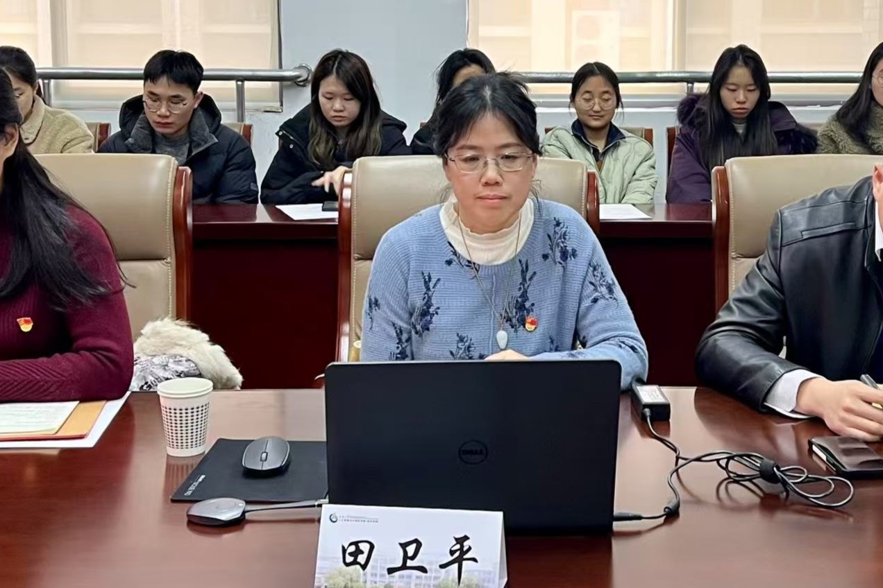 田卫平从新时代党建工作新部署、高校党建“双创”与我校情况、如何推进党建工作新进展和新成效三个方面进行了讲述,提出了党建工作要讲规范性和标准化作为第一要求,不断提高党员的政治站位。同时,也对学院成立以来在党建方面的荣誉进行了梳理,为学院党建工作创新指明了方向。
