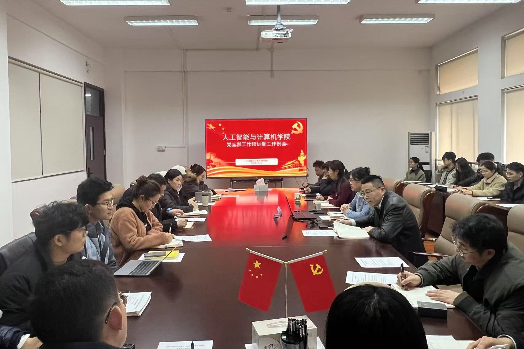 3月5日下午,人工智能与计算机学院开展新学期基层党支部培训暨支部工作例会,校党委组织部副部长田卫平作党建业务培训,学院党委书记魏珍吉、副书记王莉莉,以及学院基层党支部书记和支部委员共计40余人出席活动。
