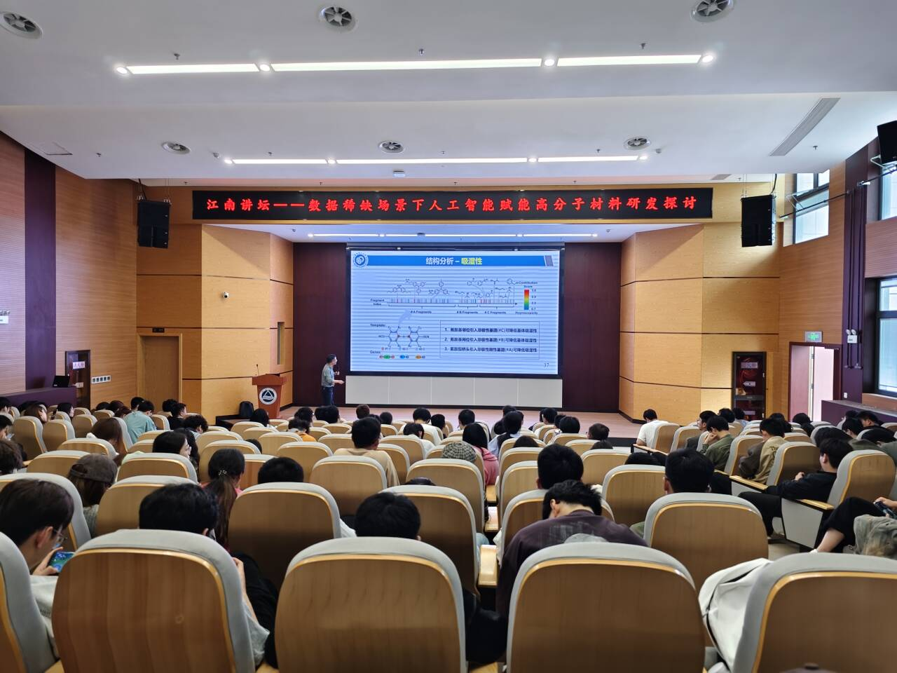 4月21日,江南大学化学与材料工程学院在东氿校区清源楼A101报告厅举办江南讲坛——人工智能赋能学科交叉专场学术论坛(第一百一十八讲)。应化学与材料工程学院邀请,华东理工大学材料科学与工程学院王立权教授作题为“数据稀缺场景下人工智能赋能高分子材料研发探讨”的学术报告。本次活动由江南大学党委研究生工作部主办,化学与材料工程学院张旭副教授主持,吸引了东氿校区200余名师生齐聚一堂。