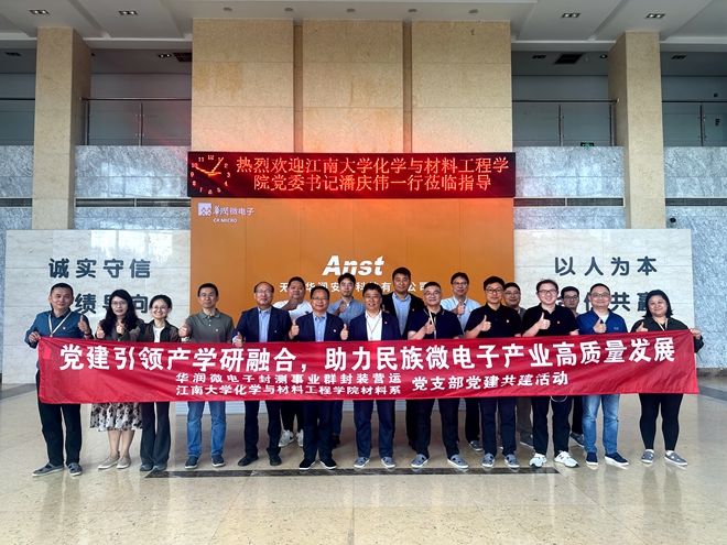 为深入学习贯彻党的二十大和二十届三中全会精神,落实高校“双带头人”教师党支部书记“强国行”专项行动计划,推动党建业务深度融合,4月28日下午,化学与材料工程学院材料系党支部与华润微电子封测事业群封装营运党支部在华润安盛科技有限公司第一会议室举行党建结对共建签约仪式,以党建为桥梁推动校企深度合作,服务教育强国建设,为民族微电子产业高质量发展注入新动能。化工学院党委书记潘庆伟、华润微电子封测事业群党委书记费锐,双方党支部党员代表及业务骨干参加签约仪式。