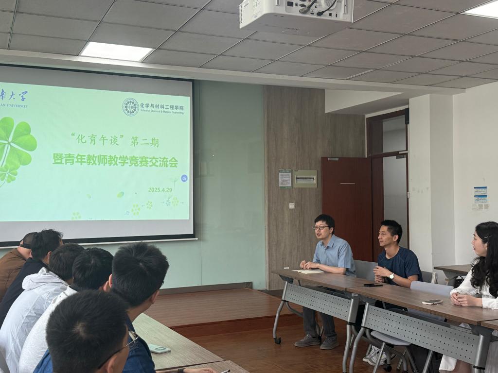 为进一步提升青年教师教学能力,助力青年教师成长,4月29日,化学与材料工程学院第二期“化育午谈”暨青年教师教学竞赛交流会在化工楼A316举行。本次活动邀请校青年教师教学竞赛特等奖获得者杜立永副教授做专题分享,学院20余名青年教师踊跃参与本次活动。本次活动由学院教学副院长王靖主持。