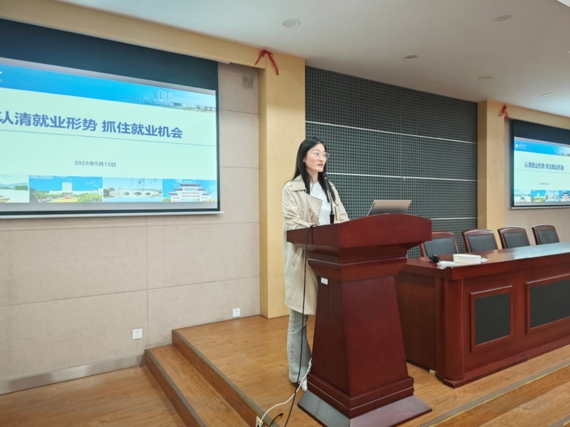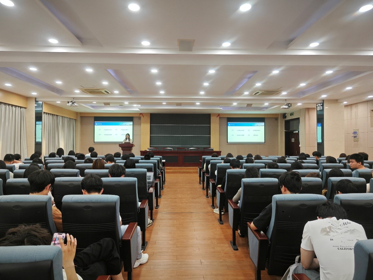 活动伊始,主持人彭婕以详实数据切入,指出当前研究生面临的就业形势。宋肖飞老师立足全国就业市场,通过行业需求热力图、岗位竞争力指数等可视化数据,深入剖析了化工新材料、生物医药等领域的就业前景。她强调“动态就业观”的重要性,建议同学们建立“目标企业梯度清单”,通过校企联合培养、暑期实习等渠道提升人岗匹配度,为现场学子提供了前瞻性的就业指导。