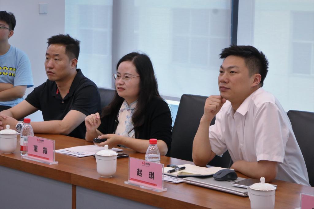 参观结束后,校企双方进行座谈交流。赵琪代表企业对学校师生的到来表示欢迎,并简要介绍了企业的发展现状和人才需求。董霞从专业设置、学科建设、师资力量和人才培养等方面介绍了学院基本情况。她表示,深化校企合作是促进技术创新和产业升级的关键纽带,更是提升人才培养质量、推动毕业生高质量充分就业的重要路径。学院不断以企业需求为导向深化产教融合,以产业需求反哺学科建设,推动人才培养与产业发展同频共振。