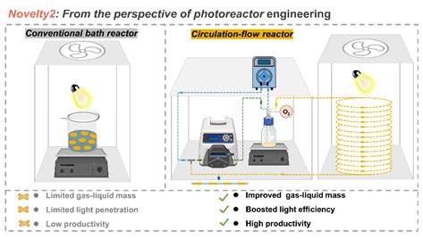 图1:新型三基元光催化剂的设计与新型循环流动光反应器构建的示意图