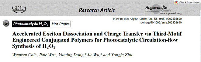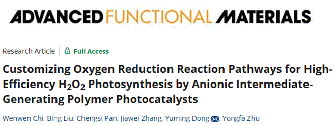 近期,我校化学与材料工程学院董玉明、朱永法团队在光催化制备双氧水方面取得重要进展,研究成果“Accelerated Exciton Dissociation and Charge Transfer via Third-Motif Engineered Conjugated Polymers for Photocatalytic Circulation-flow Synthesis of H2O2”在线发表于Angew. Chem. Int. Ed.,研究成果“Customizing Oxygen Reduction Reaction Pathways for High-Efficiency H2O2Photosynthesis by Anionic Intermediate-Generating Polymer Photocatalysts”在线发表于Adv. Funct. Mater.。