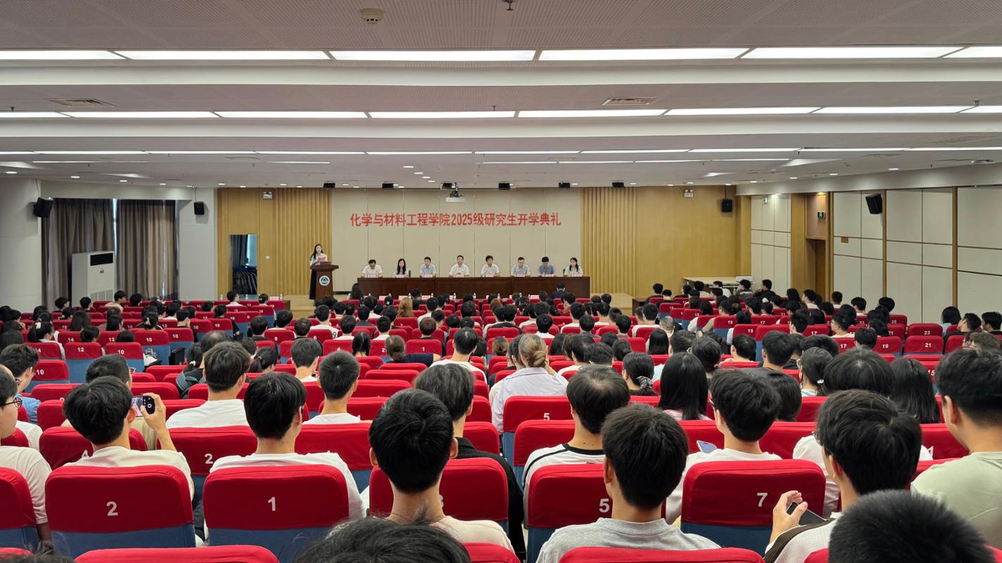 9月11日下午,化学与材料工程学院在江南大学蠡湖校区图书馆三楼报告厅举办2025级研究生开学典礼暨开学第一课。学院党委书记潘庆伟、院长刘仁、党委副书记兼副院长董霞,副院长顾志国、马丕明、王靖,导师代表董亮亮、班主任代表沈洁、学工办主任鞠峰、年级辅导员以及2025级全体硕博新生出席会议。典礼由2025级硕博辅导员高静主持。