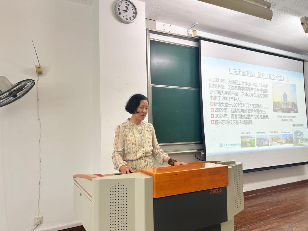 学院学科馆员严而清为新生带来了“信息素养第一课”。她从图书馆文献资源与服务简介出发,进而系统介绍了常用中外文数据库及其检索技巧,帮助大家快速定位高质量文献。针对科研过程中的实际需求,严老师还讲解了文献管理与管理工具的使用方法,演示了如何利用AI辅助进行文献调研与分析。此外她还详细说明了图书借阅流程与规则,鼓励同学们积极利用馆藏资源,拓宽学术视野。