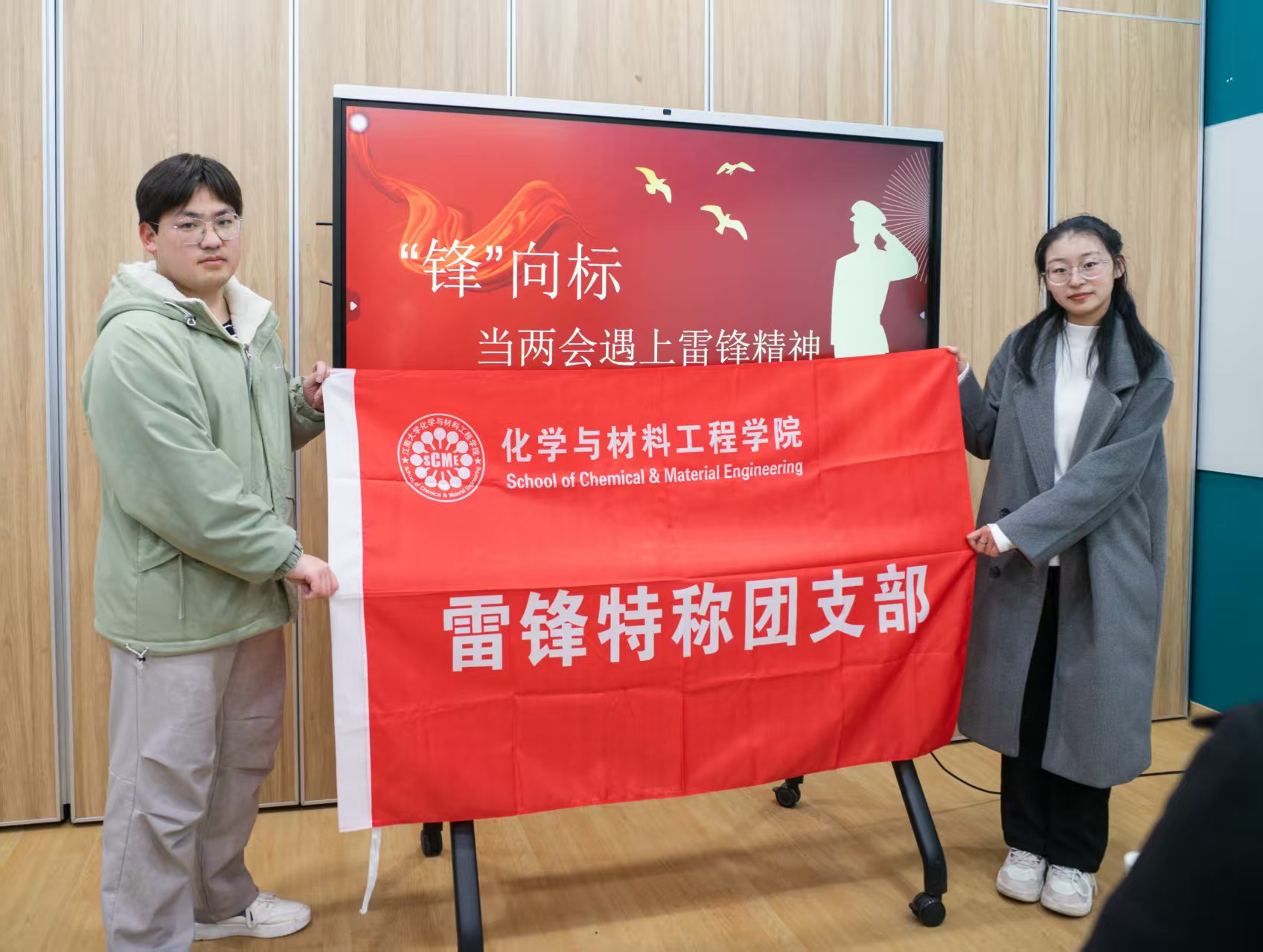 为深入学习贯彻全国两会精神,大力弘扬新时代雷锋精神,搭建团支部交流共建桥梁,近日,化学与材料工程学院高分子2201雷锋特称团支部结对化工2501班开展“‘锋’向标——当两会遇上雷锋精神”主题团日活动。活动以精神传承、朋辈引领、实践践行为核心,让高年级学长学姐与低年级新生面对面交流、心贴心互动,在轻松热烈的氛围中共同学习全国两会精神、感悟雷锋精神内涵,让奉献精神与责任担当在青春接力中传递延续。