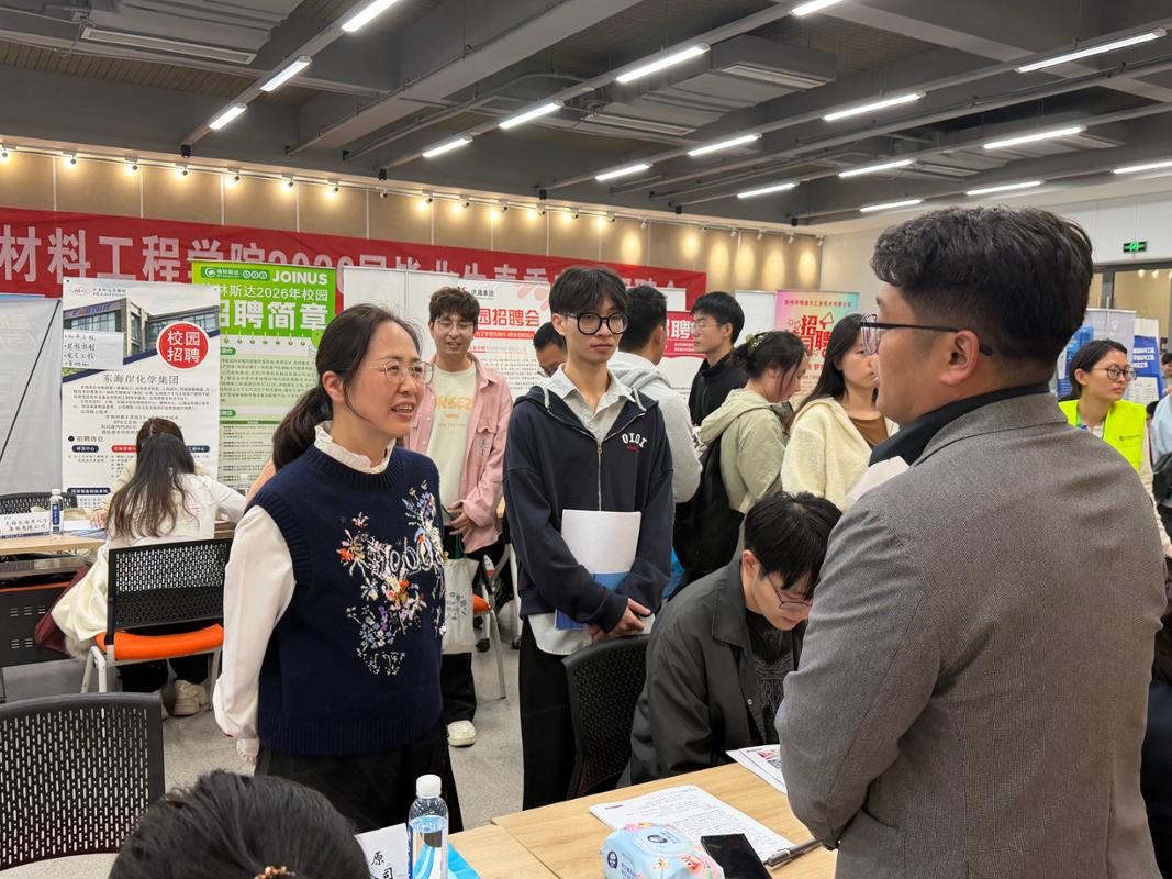 本次招聘会聚焦新材料、精细化工、新能源、生物医药等国家战略性新兴产业,汇聚了72家行业头部单位及泰州市人社局招聘团,中天科技、杭州瑞江、长兴投资等一众知名企业悉数到场,为毕业生提供了2000+优质就业岗位,覆盖材料科学与工程、化学工程与工艺、高分子材料与工程、应用化学等学院核心专业,实现了岗位供给与人才需求的精准匹配。