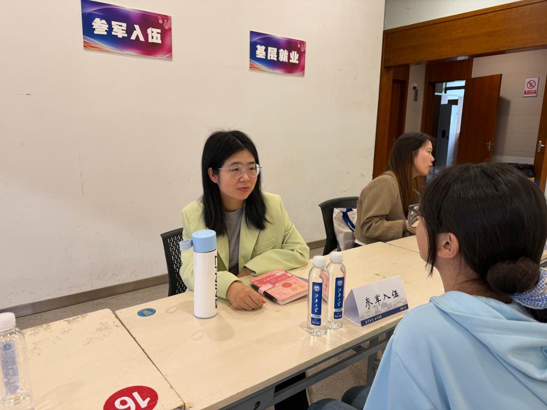 招聘会现场设立“一站式”就业服务专区,提供征兵入伍政策宣讲、基层就业项目解读、简历优化指导等多项优质服务,为学子们提供一对一精准指导。