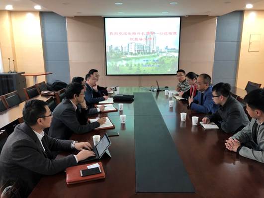 院党委书记潘庆伟代表学院对岳阳兴长石化股份有限公司领导专家一行的到来表示热烈的欢迎,并对江南大学和化工学院的总体情况进行了简要介绍。岳阳兴长石化股份有限公司总经理李燕波简要介绍了公司的成立由来、发展历程、主要工业生产装置和转型发展规划。随后,岳阳兴长石化与刘小浩教授团队就双方感兴趣的碳一化工技术进行了深入讨论。岳阳兴长石化公司与会领导专家充分肯定了刘小浩教授团队开发的创新性技术成果及其重要的商业应用前景,表达了合作意愿并对合作模式进行了探讨。会后,公司领导和专家团队一行参观了洁净能源与化工催化实验室。