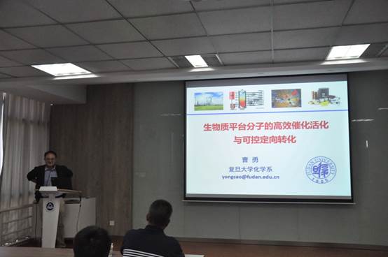 5月23日,复旦大学曹勇教授应邀来我校化工学院进行学术交流,并在化工学院学术报告厅A316做了题为“生物质平台分子的高效催化活化与可控定向转化”的精彩报告。刘小浩教授主持了本次报告会,王大伟教授、娄阳教授、胥月兵副教授、桑欣欣副教授等近百名师生参加了此次报告会。曹勇教授从金催化的发现和主要研究进展出发,结合生物质的资源化转化与利用构筑纳米金催化剂的应用新途径。重点介绍了如何设计高效纳米金催化剂应用于生物质基平台化合物甲酸作为储氢材料、5-羟甲基糠醛和甲酸分子(供氢)为原料实现无外给氢源高选择性合成对二甲苯的全新技术路线。曹勇教授学识渊博、幽默风趣和对科学问题的深刻、独特见解深深吸引了在场师生。报告会现场座无虚席、气氛活跃,参会师生就感兴趣问题与曹勇教授进行了热烈的讨论与交流。报告会后,曹勇教授参观了化工学院刘小浩教授团队实验室。