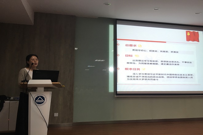 田卫平为全体毕业生党员作主题为“不忘初心、牢记使命”的党课。她从中央相关工作部署出发,就工作总要求、目标、根本任务和重大意义等作了解读,要求全体毕业生党员在今后学习工作中做到“守初心、担使命、找差距、抓落实”,时刻牢记党员身份,严于律己、廉洁奉公、坚守底线、勇于担当。全体师生认真观看了中共中央组织部党员教育中心制作的《中国共产党党员教育管理工作条例》系列教育视频,使广大学生党员深入学习掌握了条例出台背景、党员教育管理内容、遵循原则、基本任务、主要方式等,深刻认识到加强党员教育管理是党的建设的基础性、根本性、经常性任务。