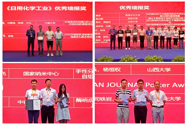 大会设立了“胶体与界面的基础科学问题及新理论和新技术”、“表界面现象”、“软物质与超分子组装”、“微纳材料组装与功能”、“胶体的可控运动与群体行为”、“表面活性剂及其混合体系”、“食品和生物胶体”、“应用胶体与界面化学”等8个分会场,共举行304个分会报告。与会代表踊跃投稿,大会共录用了来自国内外会议论文834篇,论文内容广泛,涉及胶体与界面化学各方面的最新研究成果与进展。会议还进行了墙报展示,安排了墙报522篇。经评审组评审,共选出14篇优秀墙报,其中吴家豪、张国华、王文恺、鞠冠男、肖鹏、袁进、马冬梅、齐自远等8人荣获中国化学会第十七届全国胶体与界面化学学术会议优秀墙报奖,赵炵翰、王晨蕾等2人荣获英国皇家化学会Molecular System Design & Engineering和Soft Matter优秀墙报奖,郝瑞鹏、王位等2人荣获WILEY出版社CHEMISTRY-A European Journal和CHEMISTRY-AN ASIAN JOURNAL优秀墙报奖,徐岩杰、刘建飞等2人荣获《日用化学工业》优秀墙报奖。大会还进行了胶体与界面化学研究最新仪器设备的展示,让各位代表得到了很大的收获。