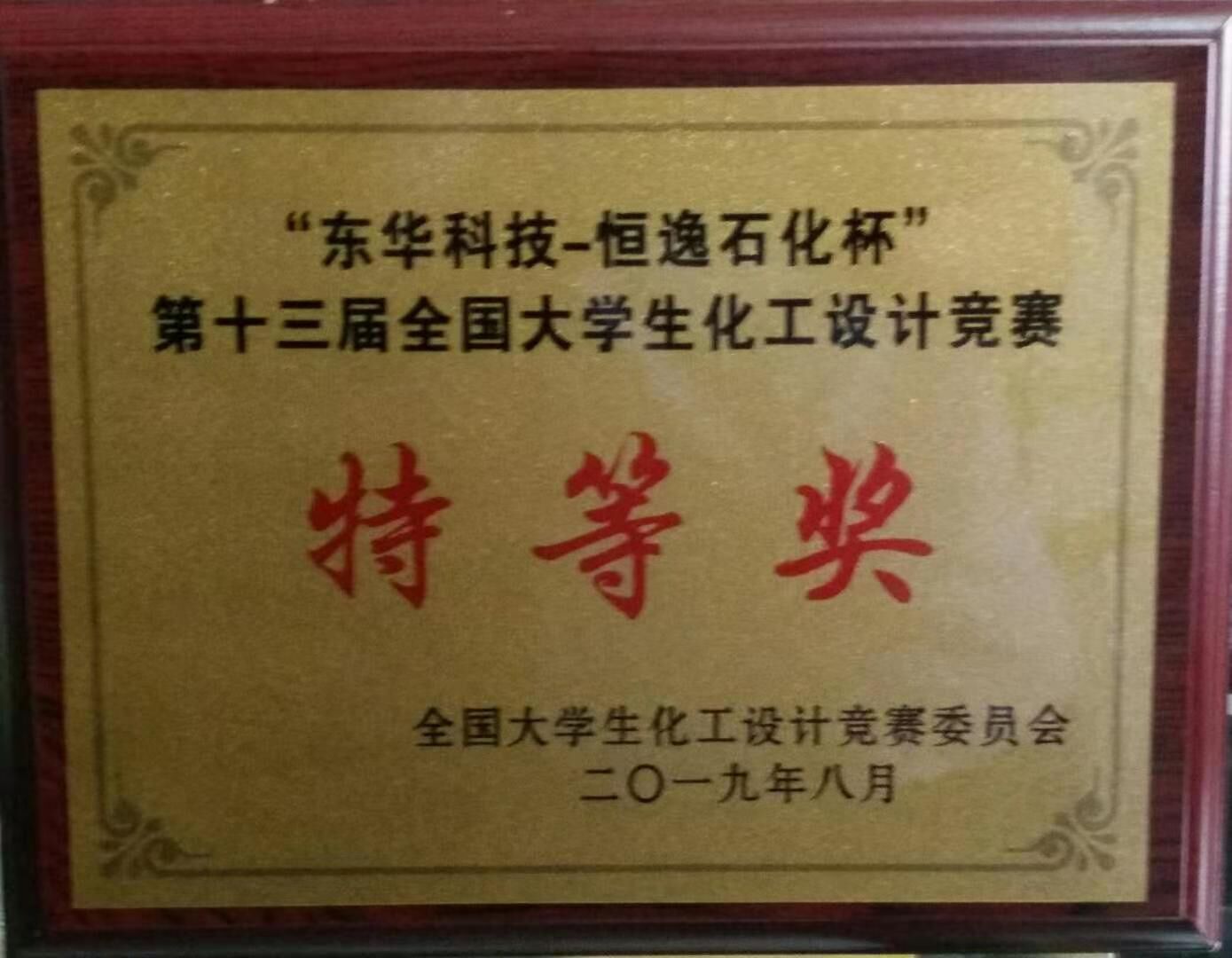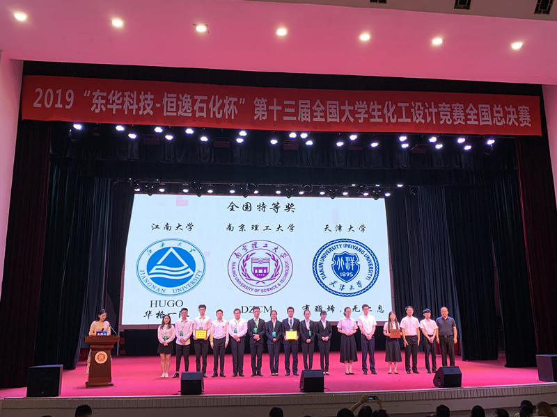 8月23日,2019年“东华科技—恒逸石化杯”第十三届全国大学生化工设计竞赛全国总决赛在山西太原中北大学落下帷幕。我校化工学院HuGe华格一队荣获全国特等奖,实现了我校在该项赛事的二连贯。
