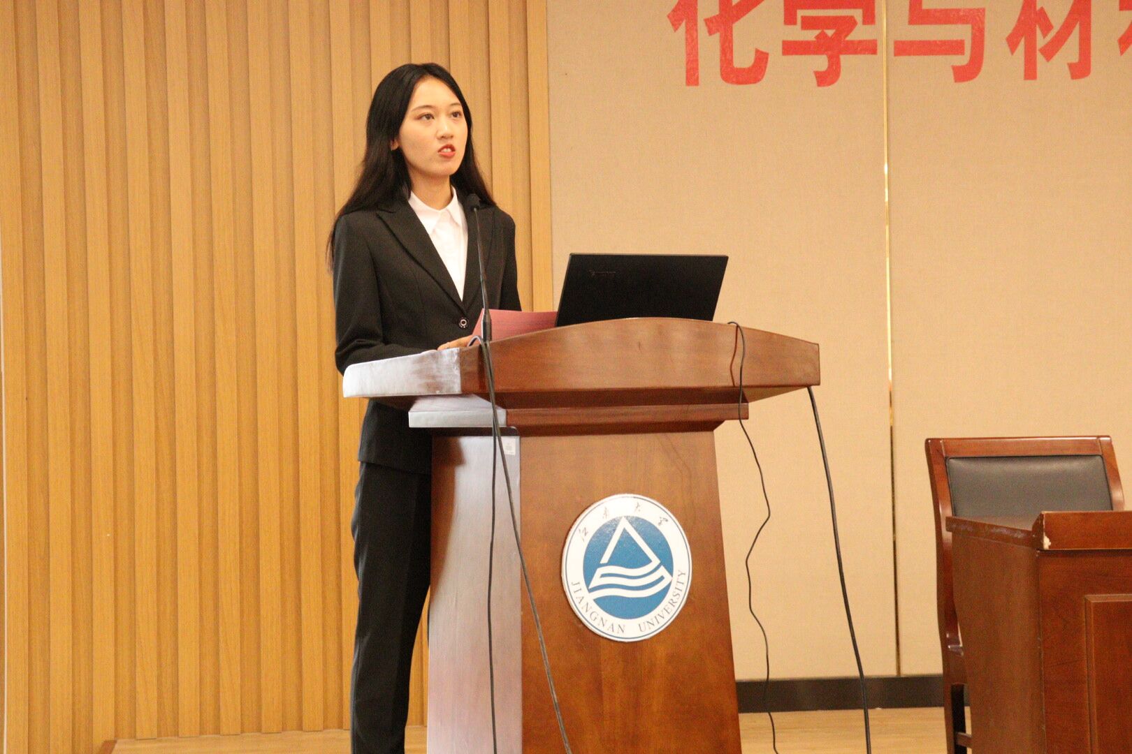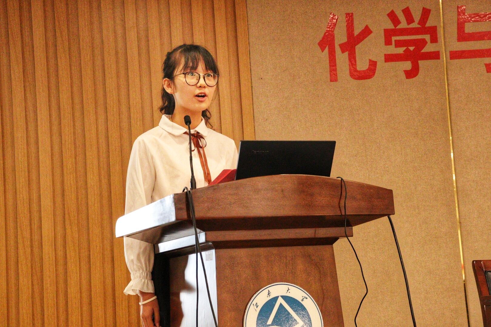 2019级应化专业的潘宇同学代表新生发言,言语间流露出对江南大学和化学学科的热爱,也正是这样的热爱,让她选择了江南大学化工学院。随后,她表达了对于大学生活的憧憬,展现了2019级新生的书生意气。