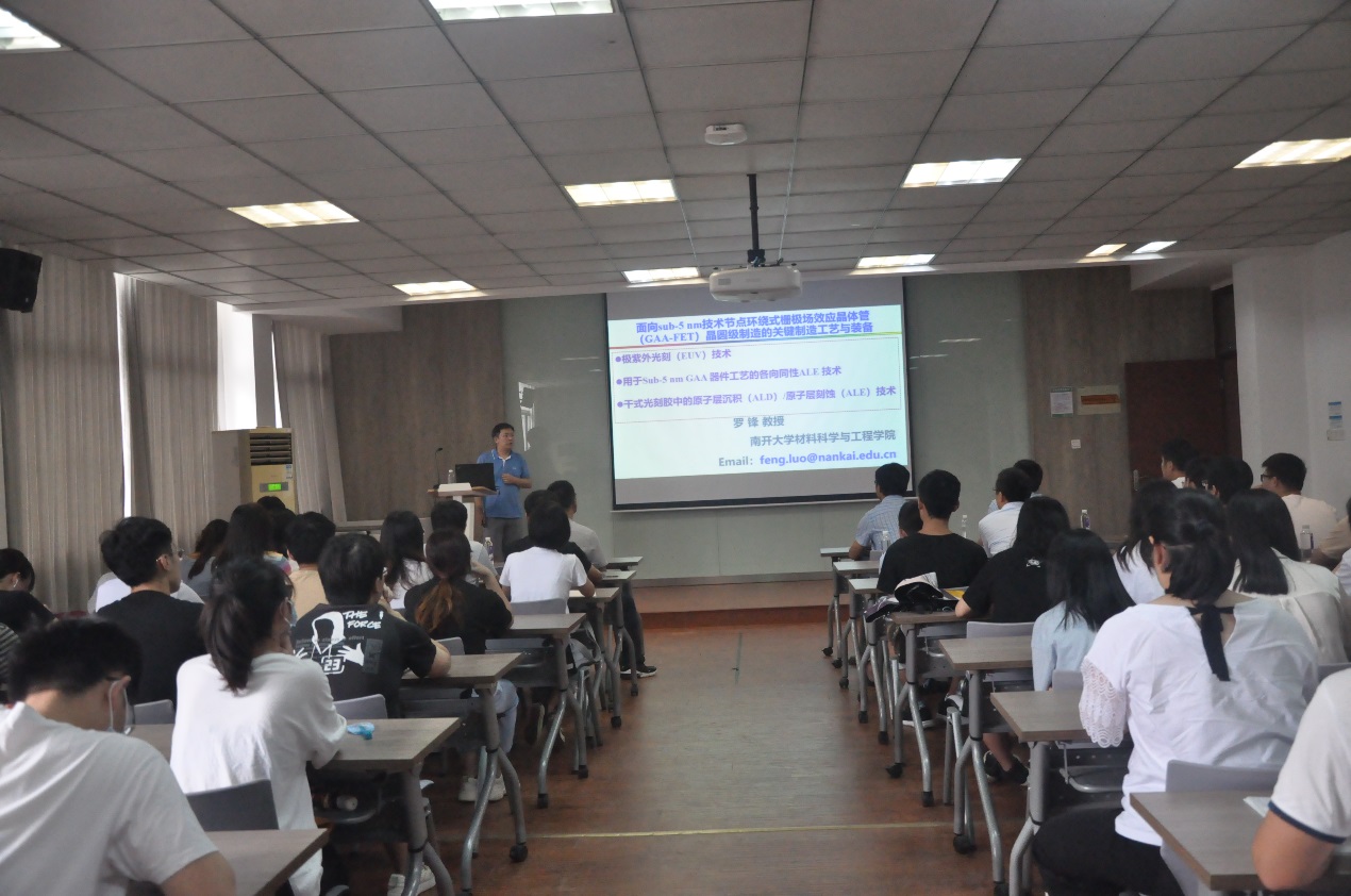7月21日,马德里高等纳米科学技术研究所终身教授罗峰教授应邀来江南大学化学与材料工程学院交流访问,并做了题为“面向sub-5 nm技术节点环绕式栅极场效应晶体管晶圆制造的极紫外光刻及原子沉积与刻蚀关键制造工艺与装备”精彩报告。东为富院长主持了此次报告会,并对罗锋教授的来访致以热烈的欢迎。化工楼A316报告厅里,百余师生济济一堂、座无虚席,认真聆听报告。