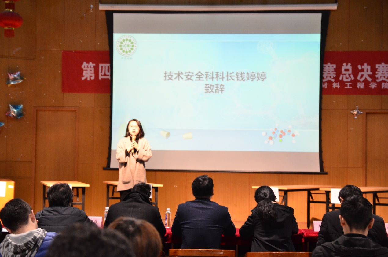 复赛于27日晚上在南区大学生活动中心进行,化学与材料工程学院党委书记潘庆伟、党委副书记兼副院长田卫平、实验室与设备管理处技术安全科科长钱婷婷以及冉国侠、王子成、严洋洋、郝林青等老师作为评委出席了本次活动,同时,此次活动邀请到扬州天辉实验室装备环保工程有限公司的秦成银经理和经纬经理担任特邀嘉宾。复赛共分为必答题、抢答题、操作题及现场互动四个环节,其题目难度高于校实验室安全准入考试题目难度,内容涉及实验室安全管理、危险化学品、院校规章制度等各方面,全面考察参赛选手的实验室安全知识积累和现场反应能力。同时,在各环节之间设有观众互动环节,引导台下的学生共同参与。