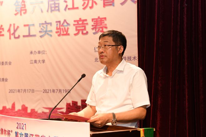 7月17-19日,由江苏省大学生化学化工实验竞赛组织委员会、江苏省化学化工学会、江苏省高校实验室研究委员会、江苏省高等学校实验教学示范中心联席会主办、江南大学承办的2021年“欧倍尔杯”第六届江苏省大学生化学化工实验竞赛在我校成功举行,此次竞赛共有来自全省41所高校、69支队伍的400余名师生参与。中国工程院院士、江南大学校长陈卫,江苏省化学化工学会副理事长、南京师范大学教授沈健出席开幕式并致辞,江苏省化学化工教学示范中心联席会主席、南京大学教授张剑荣,江苏省化学化工学会高校工作委员会常务副主任、江苏大学教授朱卫华,江苏省化学化工学会常务副秘书长陈立来以及来自参赛高校的多位领导、全体参赛师生出席。开幕式由江南大学化学与材料工程学院院长东为富主持。