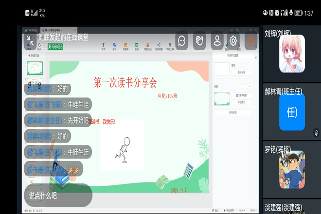 综合素质教育,筑牢发展之基。习近平总书记在全国教育大会上强调,培养什么人,是教育的首要问题。化学与材料工程学院始终致力于培养理想信念坚定、爱国情怀深厚、品德修养高尚、专业本领突出的新时代化工人。在新生入学教育中,学院以培养“德智体美劳全面发展”的人才为教育理念,注重新生综合能力的提升,组织策划“读书分享会”“个人风采展”“新生辩论会”“民族风情秀”等不同主题的线上活动。新生围绕活动主题,或是分享读书心得和入学感悟,或是介绍本人爱好和家乡美食,或是在激烈辩论中探讨人生哲理和社会百态。新生在交流讨论中发现自我,提升能力,共促成长。