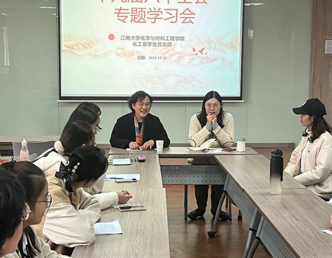 为深入学习党的十九届六中全会精神,化工学院化工系学生党支部于12月10日在化工楼A316会议室开展专题学习。本次活动特邀请刘玉老师莅临指导,支部书记杨璇及支部全体党员参与学习。