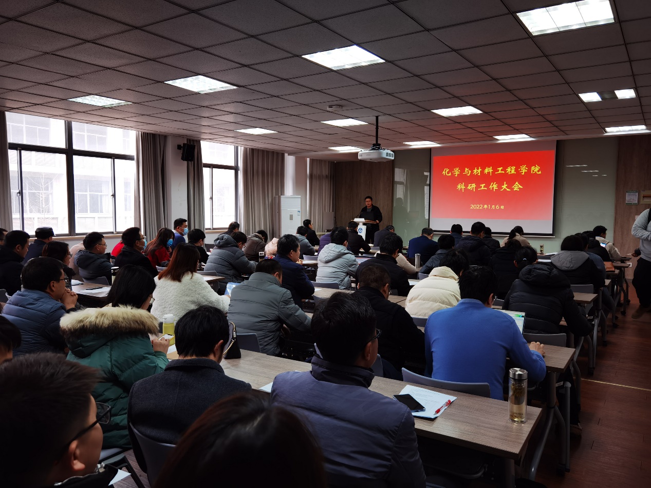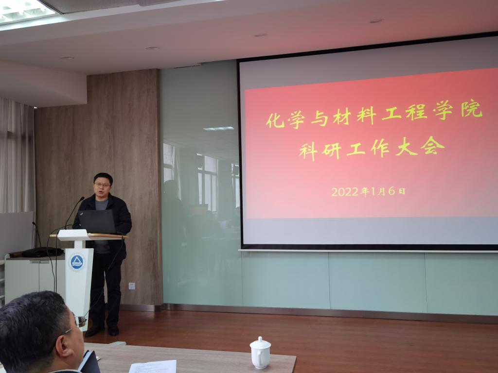 1月6日,化学与材料工程学院在化工楼A316会议室召开科研工作会议,邀请专家分享科技服务政策和经验、汇报学院年度科研进展和团队介绍交流。产业技术研究院院长刘龙教授、化学与材料工程学院全体党政领导、全体科研团队负责人及成员参加会议,会议由院长东为富主持。