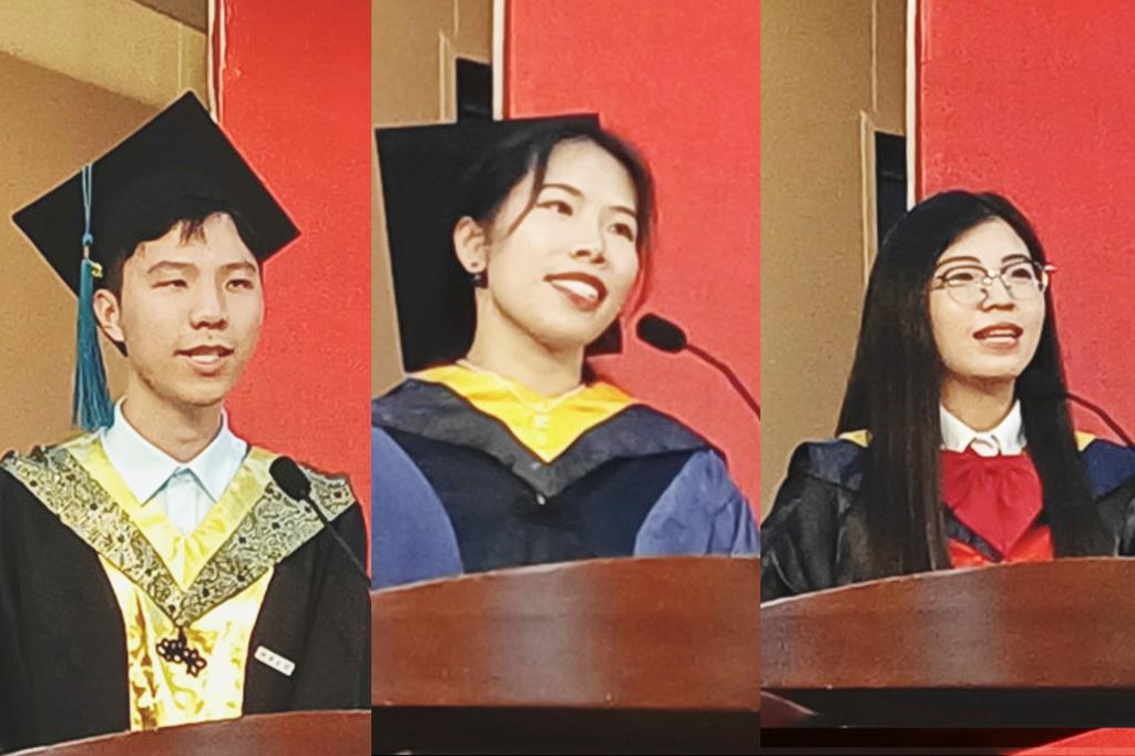 毕业生代表高分子1803班祝晗旭、化学工程与技术2019级茅沁怡、化学工程与技术2018级梁雪分别代本硕博毕业生发言,分别讲述了自己与学院四年、七年和九年的缘分与情谊,表达了对母校、对学院、对老师的感恩之情,对踏上人生新征程的坚定信心。