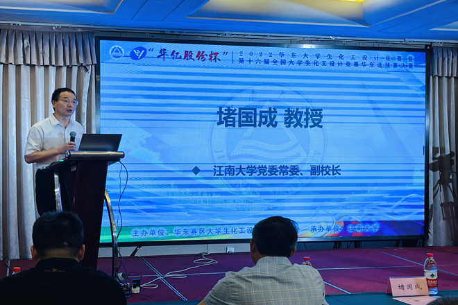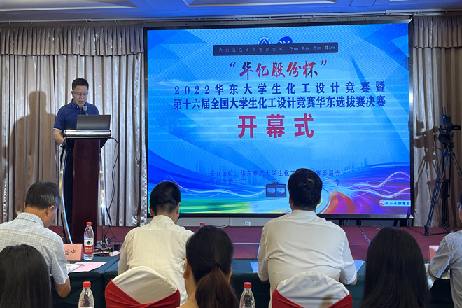 7月31日至8月5日,由中国化工学会、中国化工教育协会主办,江南大学承办的“华亿股份杯”2022华东大学生化工设计竞赛暨第十六届全国大学生化工设计竞赛华东选拔赛在我校召开。来自浙江大学、华东理工大学、江南大学等61所高校的队伍参加了本次竞赛。开幕式在8月4日上午举行,江南大学党委常委、副校长堵国成教授,全国大学生化工设计竞赛华东赛区竞赛委员会主任、华东理工大学化工学院党委书记朱学栋教授和浙江华亿工程设计股份有限公司董事长袁益中分别发表了开幕词。华东赛区竞赛委员会秘书长、华东理工大学化工学院副院长周兴贵教授,华东理工大学化工学院副院长徐至教授,江南大学化学与材料工程学院党委书记潘庆伟和来自参赛高校的多位领导、参赛师生出席。开幕式由江南大学化学与材料工程学院院长东为富教授主持。