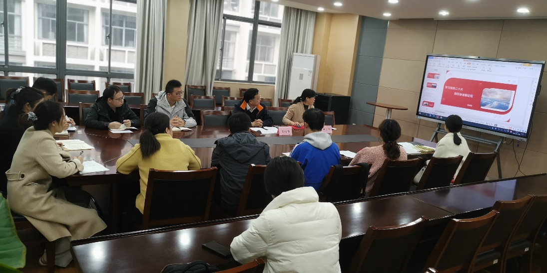 会上,党员同志们首先通过短视频《党的二十大“小课堂”之关键词学习》对党的二十大的大会主题、“三个务必”“三件大事”“两个行”“六个坚持”以及“中国式现代化”等内容进行了回顾,田卫平随后领学了《中共中央关于认真学习宣传贯彻党的二十大精神的决定》,并围绕学习贯彻党的二十大精神的重大意义以及全面领会党的二十大报告的精神与大家进行了共学。并结合博士学生发展的实际,要求大家做好切实把思想和行动统一到党的二十大精神上来,统一到党中央的决策部署上来,坚持捍卫“两个确立”,践行“两个维护”;用精神指导实践,切实提升自身建设,助力校院发展;要居安思危,迎难而上,主动作为,在校园的学习和未来的科研道路上,要敢于挑战,攻坚克难,在实现第二个百年奋斗的目标中贡献自己的力量。