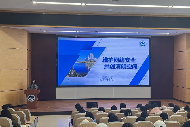 为深入贯彻党的二十大精神,引导学生坚持总体国家安全观,树立大安全观理念,提升学生的网络安全意识和安全防护技能,营造风清气正的网络环境,11月20日,化学与材料工程学院于江南大学(东氿校区)清源楼A101报告厅开展“维护网络安全,共创清朗空间”主题教育活动,2022级全体研究生参与本次活动。