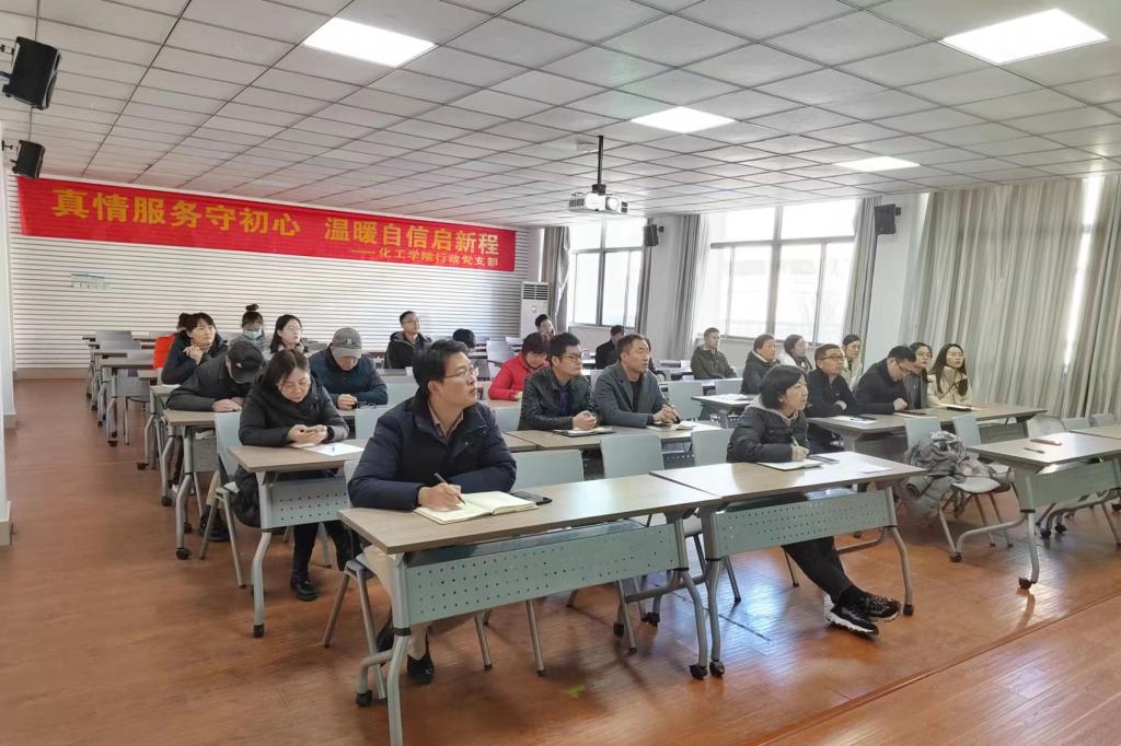 12月2日上午,化学与材料工程学院教工行政党支部邀请学院党委副书记兼副院长田卫平作主题为“学习党的二十大 踔厉奋进新征程”的党的二十大精神专题学习报告会,化学与材料工程学院全体行政工作人员、辅导员,以及教工应化系党支部部分党员共计30余人聆听了报告,报告会由教工应化系党支部书记李云兴、教工行政党支部书记阮小云分别主持。