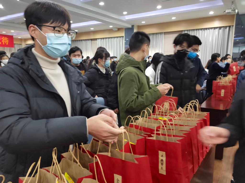 随后,潘庆伟、田卫平及各班班主任为考研学生分发考研加油礼包。加油礼包中包括考研上岸定制书签、心想事“橙”橙子、金“棒”提名棒棒糖、“果”然是你果冻、“薯”你最棒薯片、“巧”克难关巧克力、“牛”气十足牛奶、“干”劲十足饼干、考运“旺旺”小小酥等蕴含祝福的小礼品,同学们纷纷表示感受到了来自化工学院的暖意,并将在最后冲刺阶段全力以赴,争取一战上岸,不负韶华,为院争光。