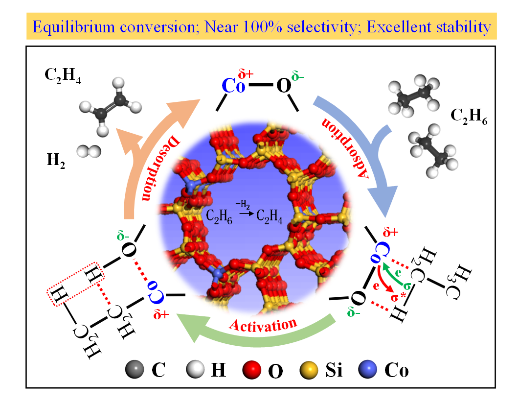 Co@MFI催化剂催化乙烷无氧脱氢制乙烯反应机理示意图