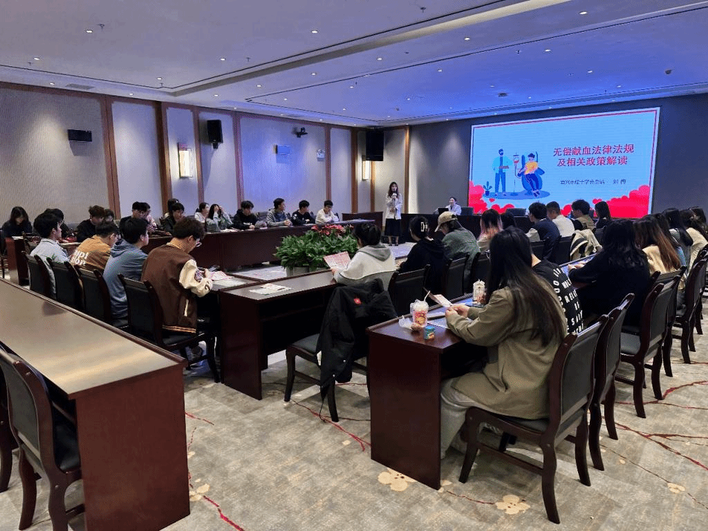 宜兴市血站血源管理科副主任刘梅为大家讲解了无偿献血的意义及法规、血液生理知识、献血流程及注意事项等内容,深入浅出地分析了无偿献血的科学性,细致的讲解使大家对无偿献血有了一个全新的认识。之后解读了江苏省对无偿献血者的奖励政策。讲座结束后,在医务人员的引导下,同学们有序地配合工作人员进行身体检查、抽取血液、化验血型等各个流程。在医务人员的讲解和鼓励下,党员同志身先士卒,不少同学也克服恐惧,力所能及做出贡献。