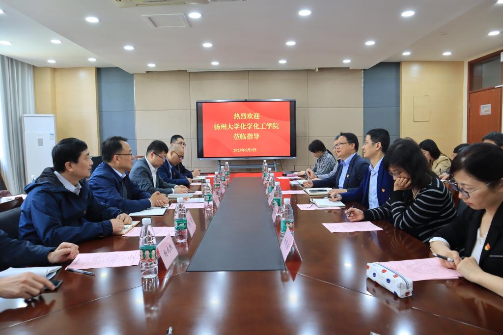 为进一步强化党建引领,发挥党委的政治引领作用、党支部的战斗堡垒作用和党员的先锋模范作用,实现兄弟高校院系之间的资源共享、优势互补,促进党建与业务互融互促,提升人才培养质量,提高科技创新能力,我校化工学院党委和扬州大学化学化工学院党委以“凝聚党建合力、促进事业发展”为目标,于5月9日组织开展了党委共建签约和交流调研活动,双方党政领导班子、党支部书记代表及学院实验室、教学课程组等部门党员骨干等近30余名代表出席了此次活动。签约仪式由化工学院副院长董玉明主持。