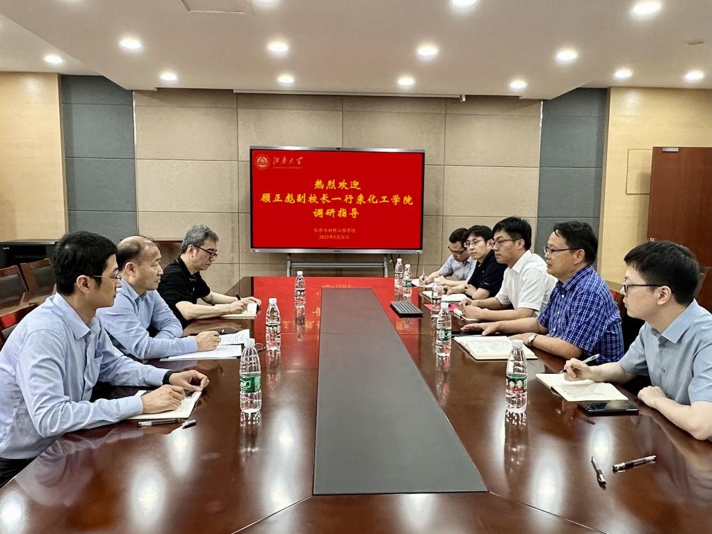 5月31日下午,校党委常委、副校长顾正彪赴化学与材料工程学院调研指导,发展规划与学科建设处处长刘飞、副处长董玉明一起参与调研,化学与材料工程学院党政领导班子全体成员参加调研会。